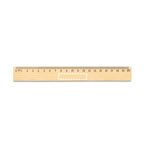 Règle en bois de pin avec échelle graduée de 20 cm imprimée en noir. Le produit étant fabriqué à partir de matériaux naturels, la couleur du produit ainsi que le résultat de l'impression peuvent varier d'un produit à l'autre. 209 x 25 mm