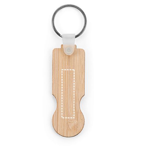 Porte-clés en bambou avec extrémité en forme de pièce de monnaie. Le produit étant fabriqué à partir de matériaux naturels, la couleur du produit ainsi que le résultat de l'impression peuvent varier d'un produit à l'autre. Anneau : ø 25 mm | Produit : 65 x 23 x 2 mm | Connecteur : 15 x 9 x 6 mm | Total: 93 x 25 x 6 mm