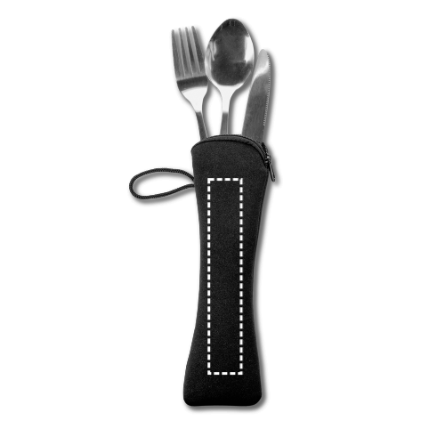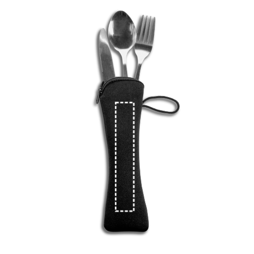 Set de couverts en acier inoxydable composé de 3 pièces : 1 fourchette, 1 couteau et 1 cuillère. Le set passe au lave-vaisselle. Livré dans une pochette en néoprène avec une poignée pour un transport facile, idéal pour l'emporter partout. Sac : 235 x 40 mm