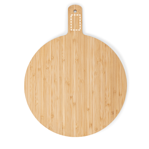 Plateau de service rond en bambou avec une poignée pour faciliter le transport ou le rangement, car il peut être suspendu grâce à son trou. Idéal pour les pizzas. Ce produit étant fabriqué à partir de matériaux naturels, la couleur et l'impression peuvent varier d'un produit à l'autre. 400 x 310 x 9 mm