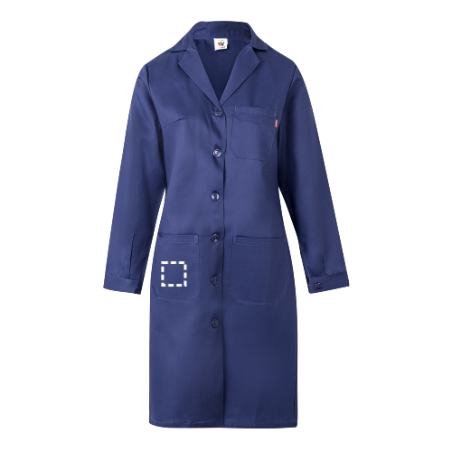 Blouse à manches longues en sergé (175g/m²), en sergé de coton (35%) et polyester (65%). Boutonnée, ajustée, ceinture au dos, poignets boutonnés et trois poches. Taille: 38, 40, 42, 44, 46, 48, 50, 52, 54, 56, 58, 60