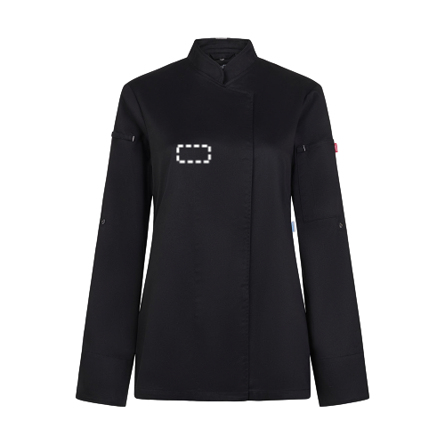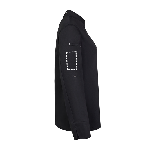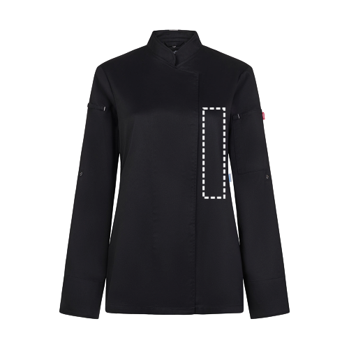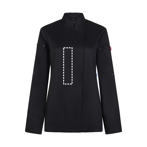 Veste de cuisine pour femme (190 g/m²) en coton (35 %) et polyester recyclé (65 %). Conception féminine et confortable, tissu hydrofuge et dos en tissu COOLMAX respirant. La veste est dotée d'une fermeture éclair centrale avec boutons dissimulés. Taille : XS, S, M, L, XL, 2XL