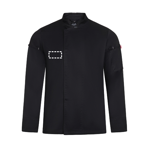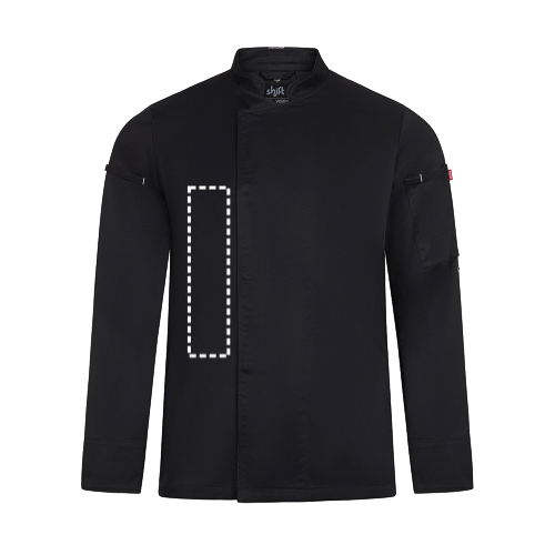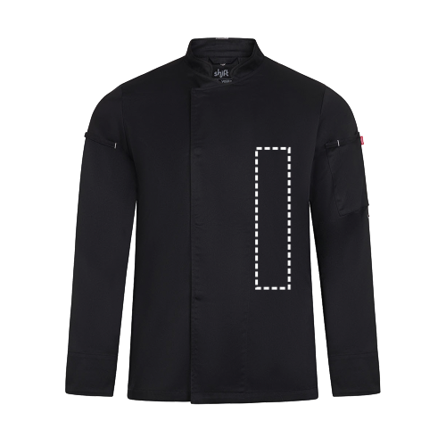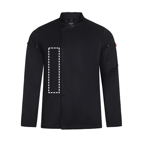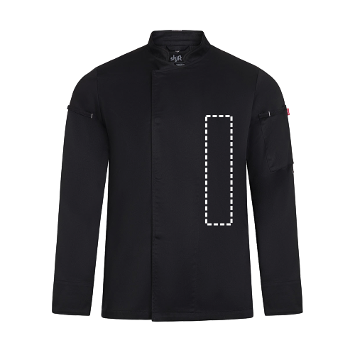 Veste de chef unisexe (190 g/m²) en coton (35 %) et polyester recyclé (65 %). Confortable, elle est dotée d'un tissu hydrofuge et doux au toucher, ainsi que d'un dos en tissu COOLMAX respirant. La veste est dotée d'une fermeture éclair centrale avec boutons dissimulés. Taille : S, M, L, XL, 2XL, 3XL