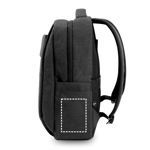 Sac à dos pour ordinateur portable entièrement rembourré en polyester recyclé haute densité 300D et doublure en polyester recyclé 210D. Il dispose d'un compartiment principal pour un ordinateur portable jusqu'à 15.6" et de plusieurs poches. 2 poches avant zippées et 1 poche latérale pour transporter votre bouteille. Le dos intègre une sangle pour trolley. Capacité jusqu'à 18 L. 300 x 430 x 140 mm