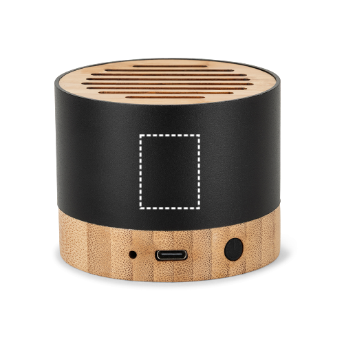 Enceinte portable au design minimaliste et sophistiqué, résultat d'une fusion parfaite entre le bambou et l'aluminium recyclé. Avec microphone intégré et fonction mains libres, elle permet de répondre aux appels et de démarrer ou d'arrêter la lecture directement sur l'enceinte, garantissant une utilisation simple et intuitive tant au travail que pendant les moments de loisirs.Matériau: aluminium recyclé (100 % rAL) , bambouTransmission sans fil: BT v5. 3Capacité: 300 mAhAutonomie approximative: 3 hTemps de charge approximatif: 2 hEntrée: USB-C (1 W)Réponse en fréquence: 80 Hz - 16 KHzRapport signal/bruit: > 80 dBSensibilité: 80 ±3 dBImpédance: 4ΩDiamètre de l'enceinte: Ø 52 mmPuissance sonore: 3 WSensibilité: -38±3 dBV/PaComprend: câble USB-A / USB-CLivraison: boîte cadeau en papier kraft ø70 x 52 mm | Boîte: 90 x 72 x 62 mm