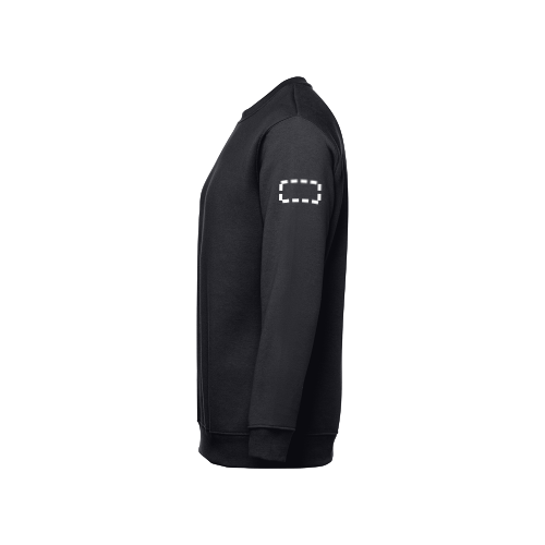 Sweatshirt (unisexe) en 50% coton et 50% polyester (300 g/m²) avec intérieur molleton. Contient des coutures doubles et en rib au col, aux poignets et à la taille. Le col comprend un ruban de renfort. Tailles: S, M, L, XL, XXL