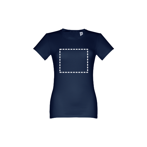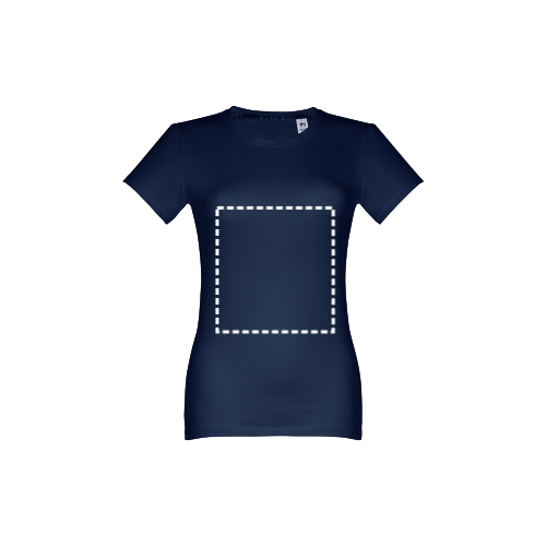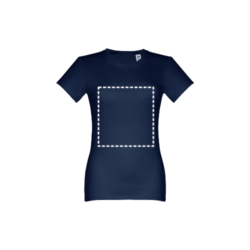 T-shirt ceinturé pour femme en maille jersey 100% coton (190 g/m²) avec fil de coton cardé (couleur 183: 90% coton/10% viscose). Contient un col en jersey fin avec un ruban de propreté en satin. Pièce coupée et cousue avec double surpiqûre sur les manches et le bas. Tailles: S, M, L, XL, XXL