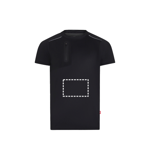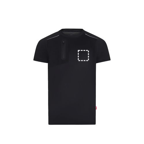 T-shirt technique en tissu gaufré (110 g/m²), 100 % polyester recyclé. Modèle confortable, col rond, manches raglan et détails réfléchissants sur les épaules et dans le dos. La poche poitrine en polyester EME est dotée d'une fermeture à glissière thermosoudée. Taille : S, M, L, XL, 2XL, 3XL